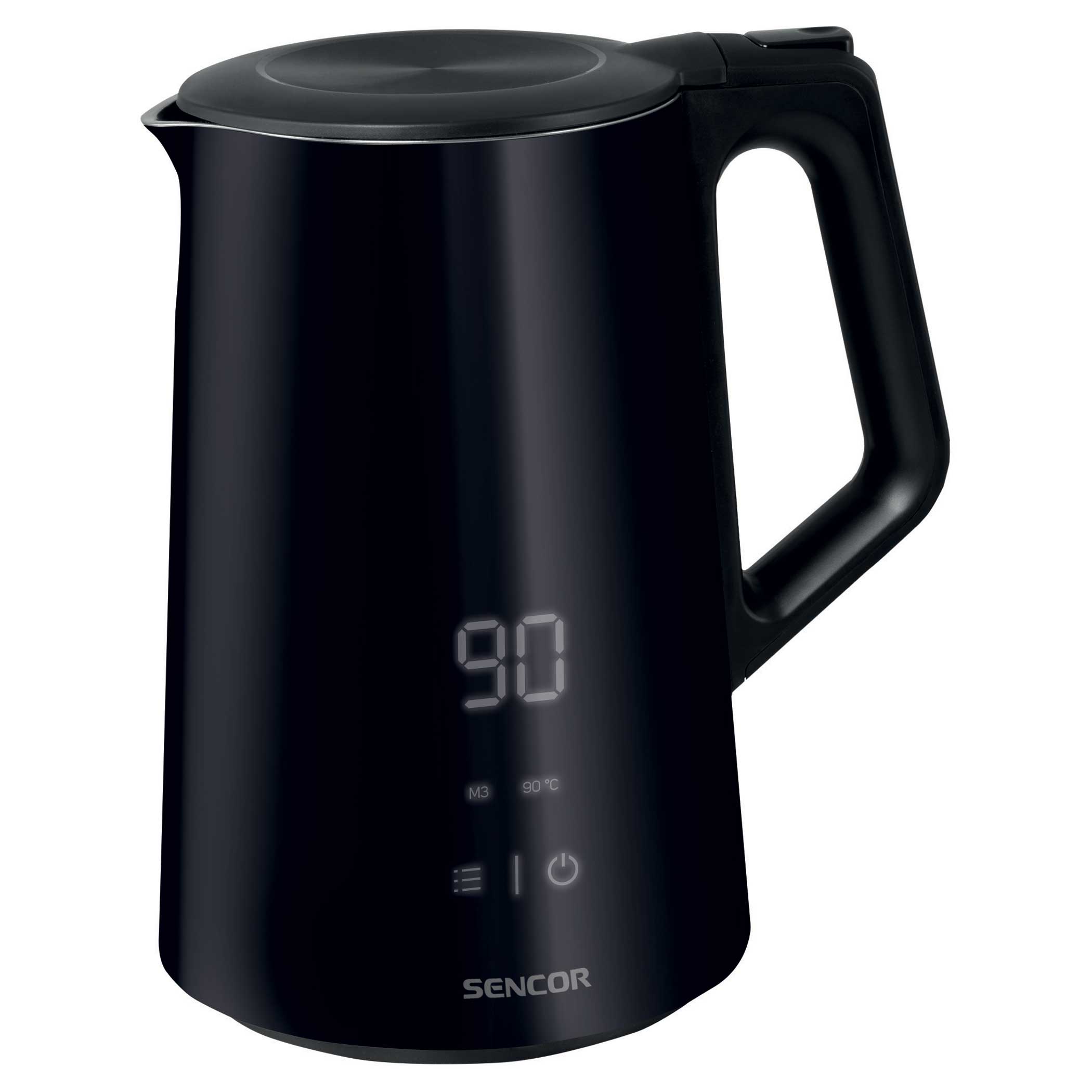 Sháníte do své domácnosti chytrého, schopného a vzhledného pomocníka? Sencor přichází s rychlovarnou konvicí SWK 0590BK, která všechny tyto body na výbornou splňuje. Je objemná, pojme až litr a půl vody, ohromí vás svým výkonem, a navíc ve vaší kuchyni dozajista vynikne! Její minimalistické černé tělo je vyrobeno z nejkvalitnější nerezové oceli, jež je velmi odolný materiál, o který se navíc velmi snadno pečuje. Její plášť je navíc dvojitý, takže i v případě, že se ji dotknete s horkým obsahem uvnitř, její vnější plášť zůstává chladný. Jaké jsou její důležité funkce? Tou první je bezpochyby její ovládání, které je zcela dotykové. Veškerá nastavení provádíte na LED podsvíceném displeji, který je velmi designový, ale též snadný na obsluhu. Druhou funkcí je pak elektronická regulace teploty vody. Tato technologie vám umožní ohřát si vodu na přesně takovou teplotu, která vám v dané chvíli bude vyhovovat. Volit můžete ze 40, 80, 90 a 100 °C.