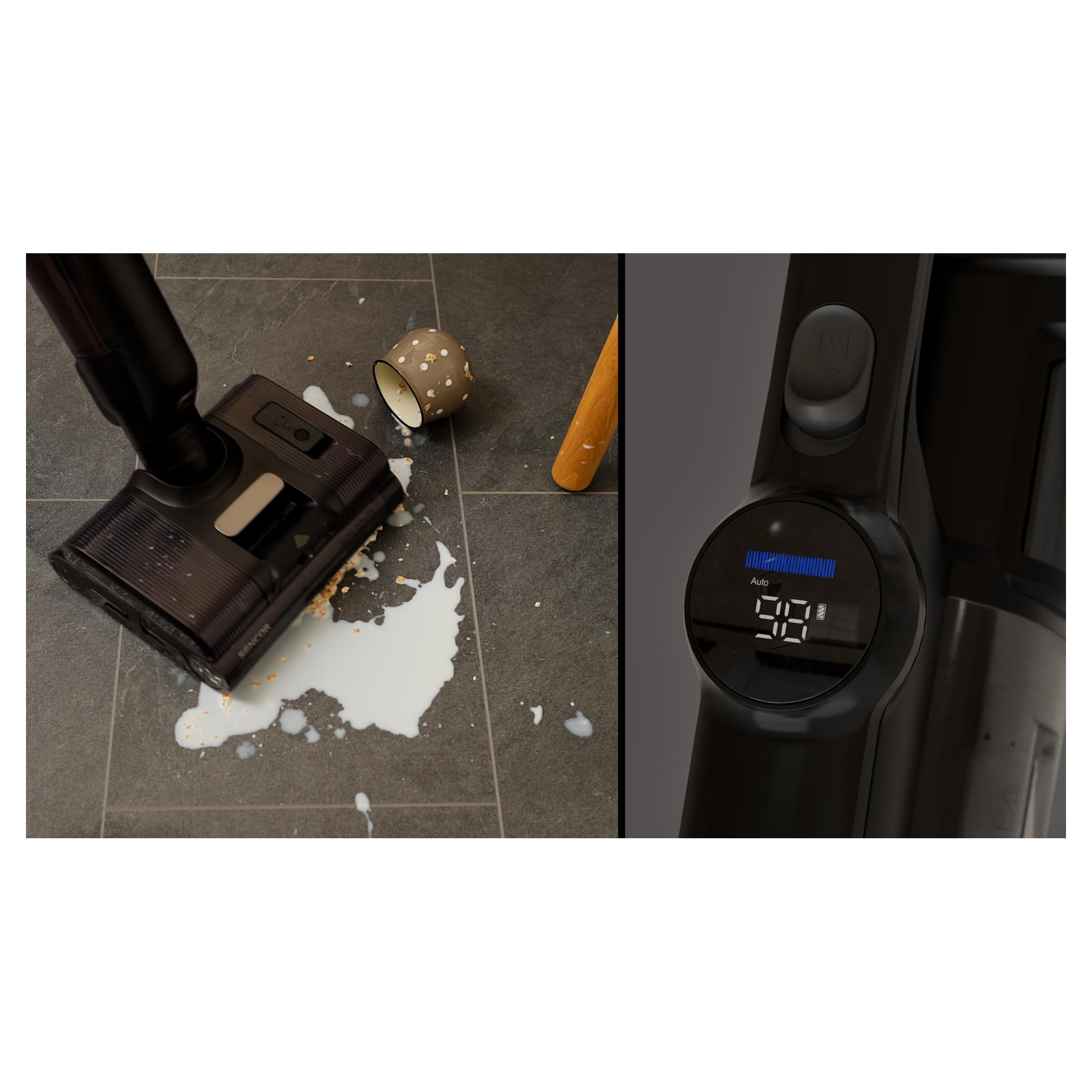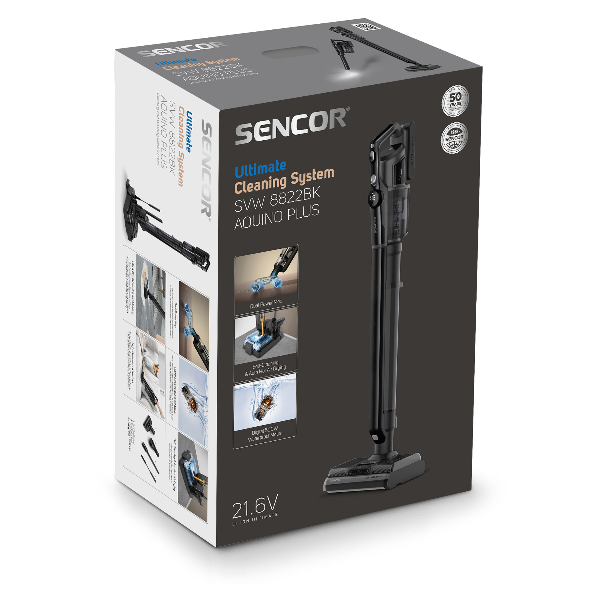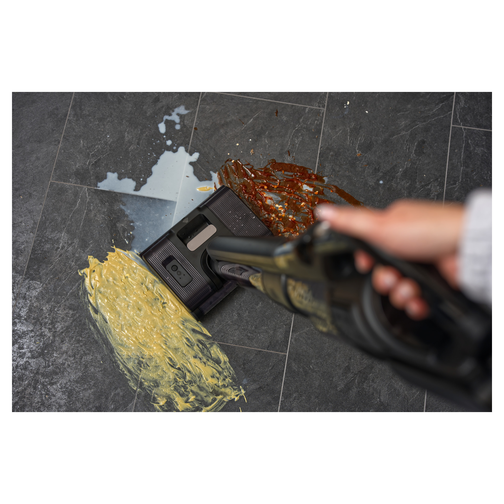 Zásluhou voděodolného motoru s výkonem 500 W jsou všechny suché i mokré nečistoty odsáty do velké nádoby o objemu 600 ml.Chytré senzory