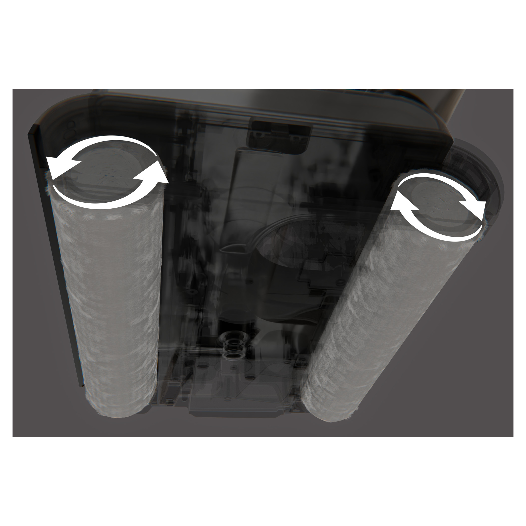 Čistič bez problému vysaje suché i mokré nečistoty. Snadno tak uklidí i vylité pití nebo převrhnuté jídlo. V režimu mokrého čištění vydrží na jedno nabití až 30 minut.Systém dvou rotačních kartáčů