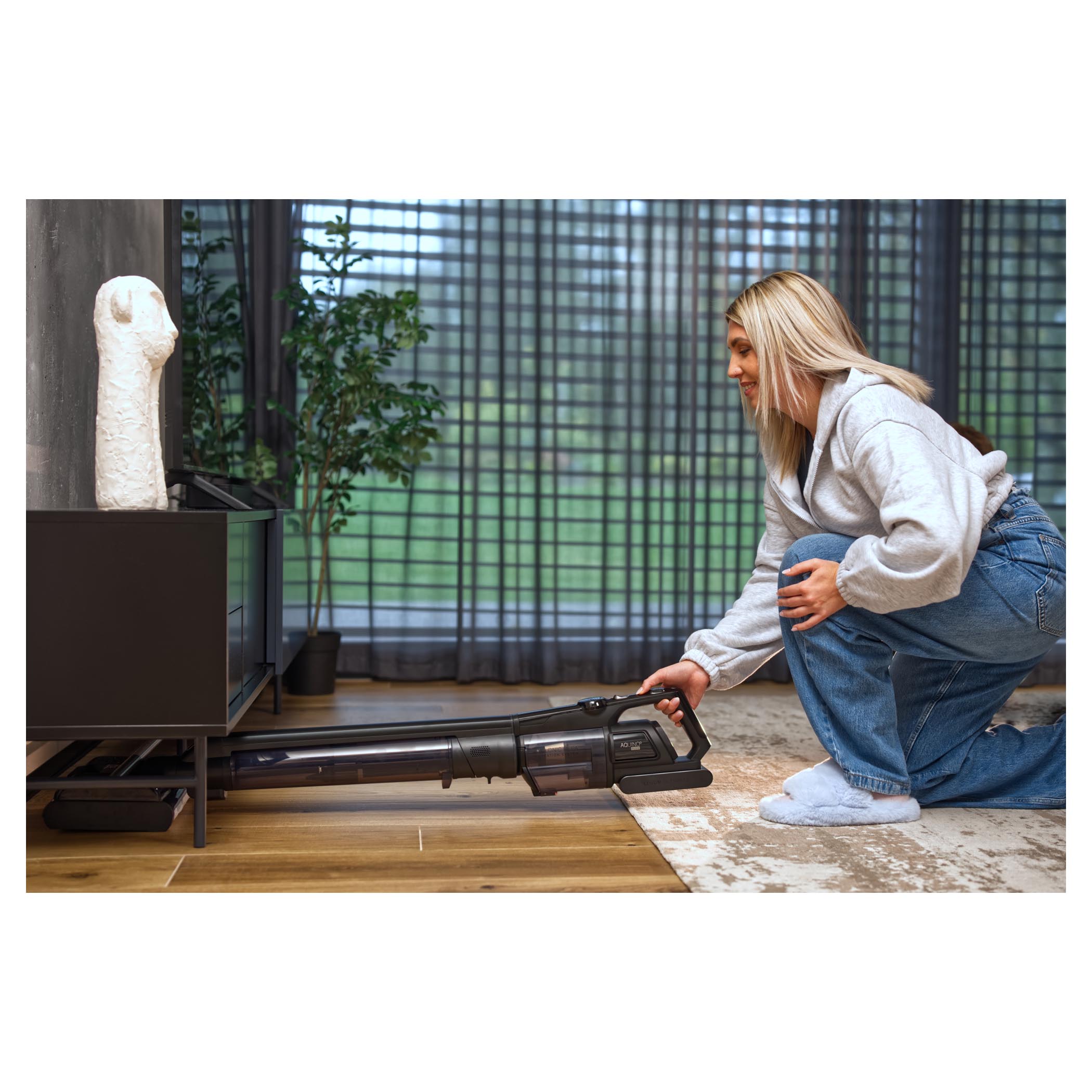 Speciální konstrukce čističe a voděodolný motor nabízejí možnost úklidu v horizontální poloze, díky čemuž se zbavíte prachu a nečistot i pod nábytkem.Úklid těsně podél stěn