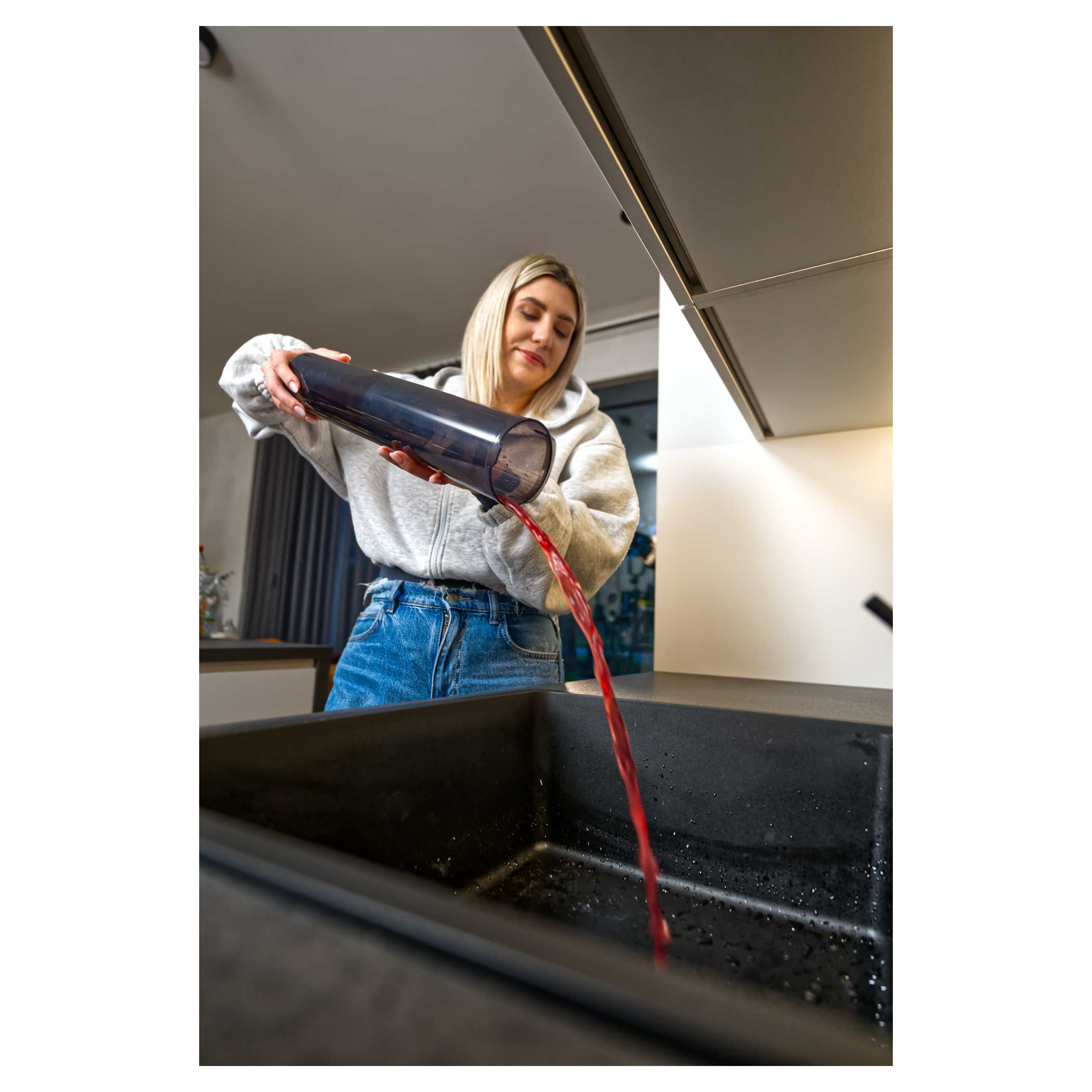 Při mokrém čištění jsou všechny nečistoty vysáty do nádoby na špinavou vodu, kterou stačí po úklidu vylít. Při suchém vysávání stačí nádobu na prach jedním dotykem otevřít a vysypat.Obsah balení